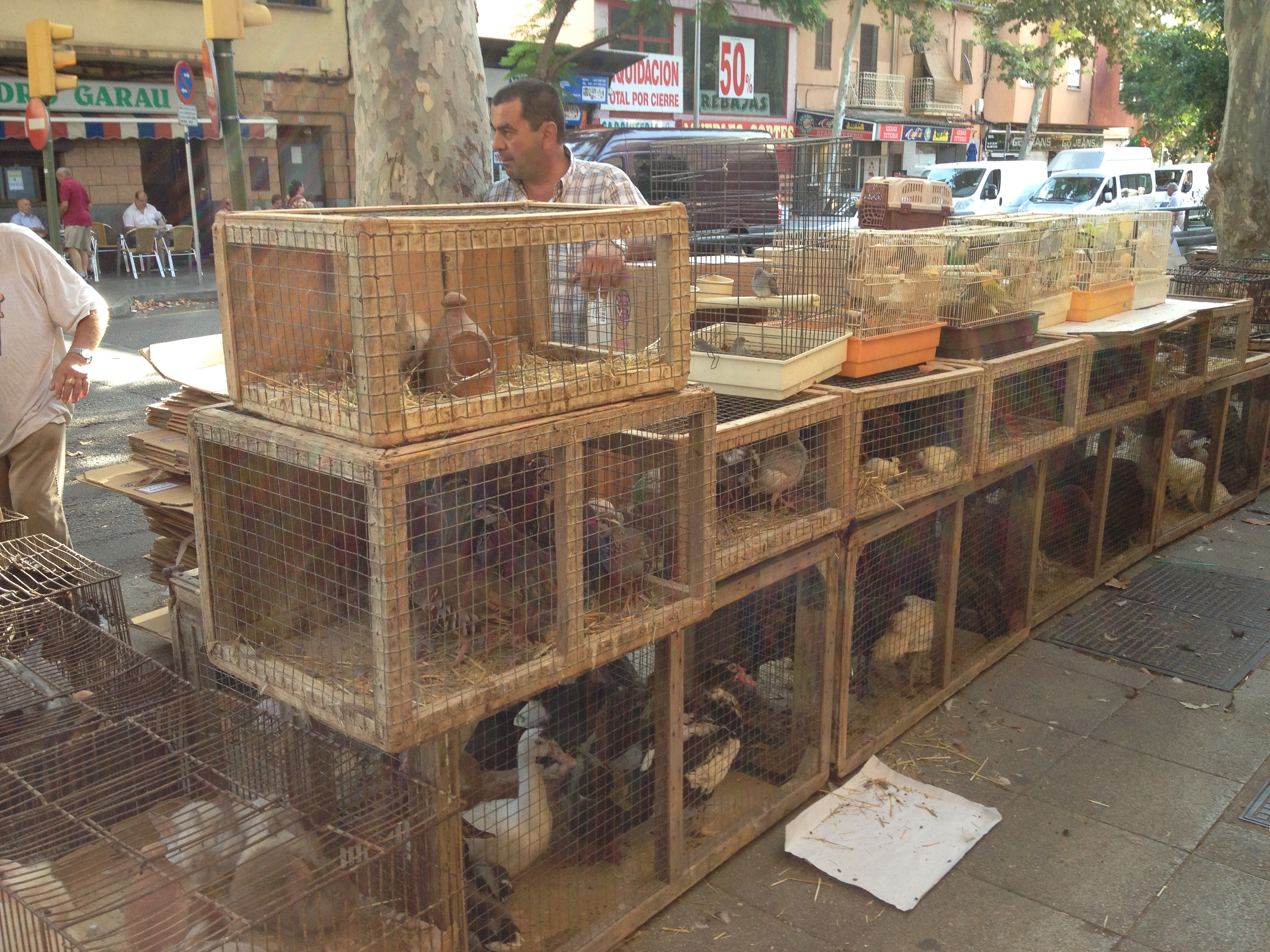 Es gibt in der Markthalle ein paar Bars, in denen man auch Tapas essen kann. Die kommen aber nicht an die Bar Juan Frau im Mercat de Santa Catalina heran. Dafür gibt es außerhalb der Halle Möglichkeiten Kaffe zu trinken und dem Treiben zuzuschauen. Der Markt liegt nämlich auf einem rechteckigen Platz, um den herum ein zweispuriger Kreisverkehr verläuft. Auf der gegenüberliegenden Seite sind Bars. Wenn man da sitzt, fühlt man sich ein wenig erinnert an die Atmosphäre auf den Pariser Boulevards im Saint Germain.