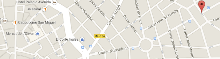 Wo liegt der Markt? Fahr‘ mit dem Auto auf dem inneren Ring bis zum Kaufhaus El Corte Inglés. Dann bieg‘ in die Carrer Nuredunna ein. Wenn du von Norden kommst, geht das nicht ohne weiteres, bleib‘ dann solange auf dem Ring, bis du die Seite wechseln kannst. Die Verlängerung der Carrer Nuredunna führt über einen Kreisverkehr (3. Ausfahrt) direkt auf den Markt zu. Hier ist überall blauer Parkbereich, zwei Stunden kosten € 1,35.