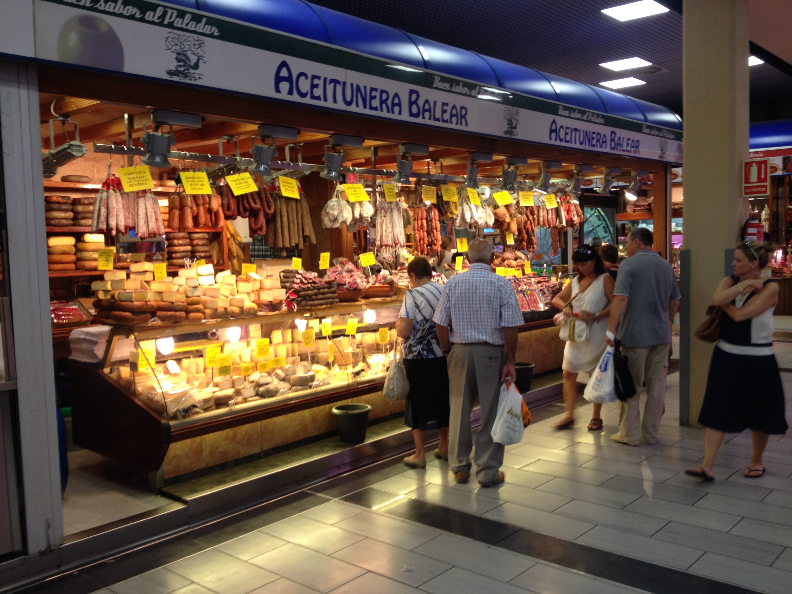 In diesen Markt gehe ich also, wenn ich einen Fisch kaufen möchte, den ich woanders nicht bekomme und zum anderen um Mahón Käse zu kaufen. Da gibt es eine besonders gute Auswahl am Stand von Aceitunera Balear.