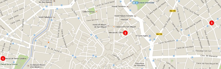 Palma hat drei große Markthallen (unter dem Link: Mercats Municipals findet man die aktuellen Öffnungszeiten) mit jeweils völlig unterschiedlichem Charakter. Auf jedem der Märkte kann man bestimmte Produkte besonders gut kaufen. Wobei „besonders gut“ natürlich sehr subjektiv ist – weder ist mein persönlicher Geschmack maßgeblich für andere, noch kenne ich alle Stände und Produkte. Was in diesem Beitrag beschrieben wird ist also im wahrsten Sinne des Wortes „mit Vorsicht zu genießen“ und wird sich im Lauf der Zeit vermutlich ändern und erweitern.
