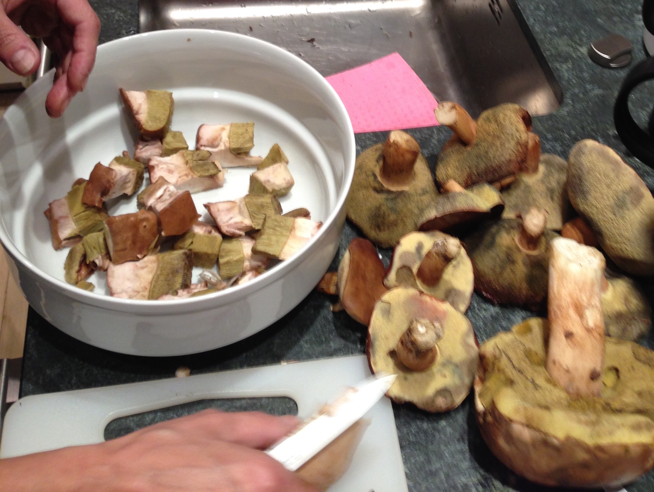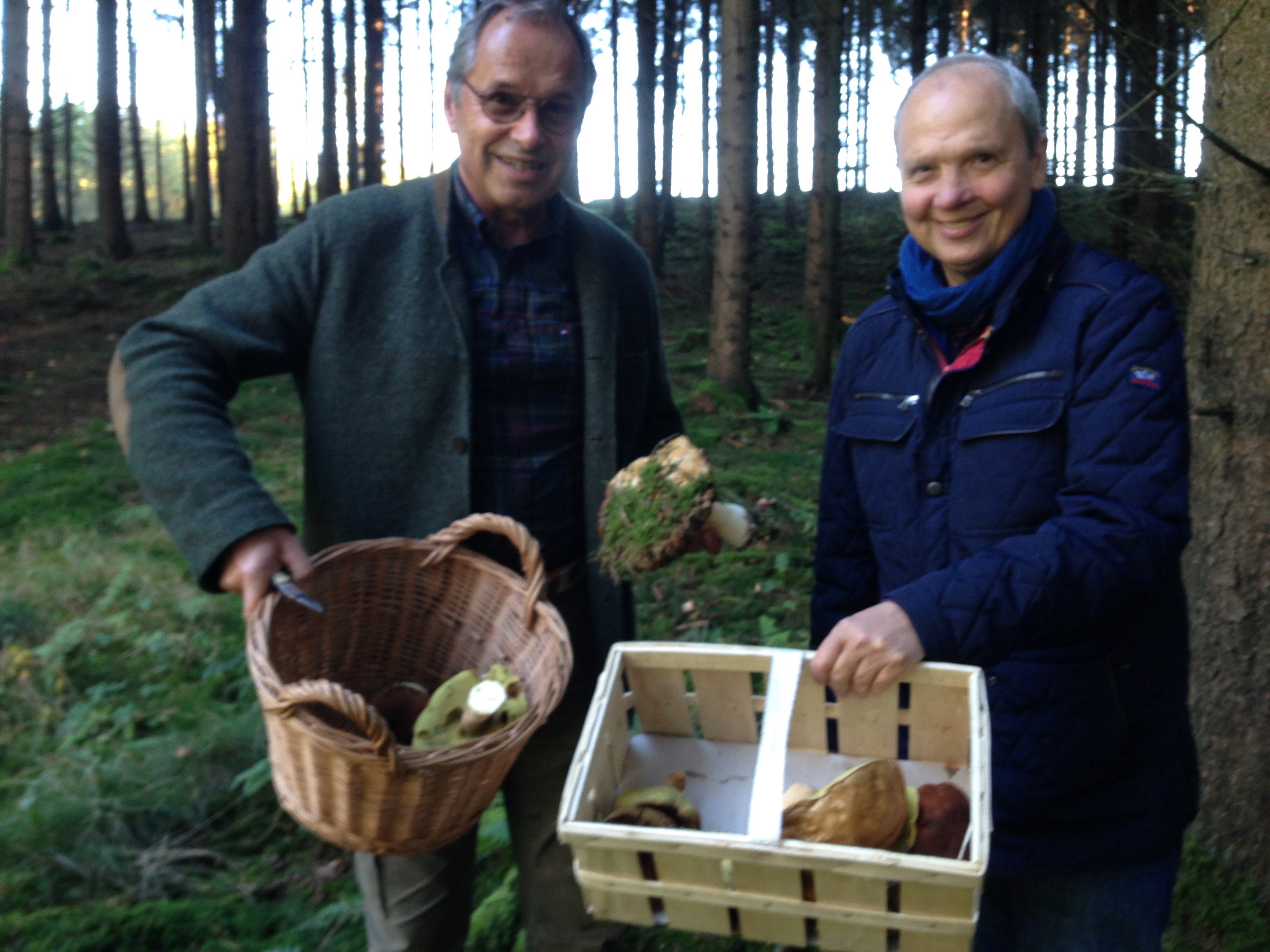 Wir sammelten Steinpilze und Maronenröhrlinge. Steinpilze haben eine netzartige Stieloberfläche, während der Stiel des Maronenröhrlings eine längliche Maserung aufweist. Das Fleisch der Steinpilze ist fest, weiss und verfärbt sich nicht beim Anschnitt. Auch der Röhrenschwamm unter ihrem braunen Hut verfärbt sich nicht, wenn du ihn drückst, ganz im Gegensatz zum Maronenröhrling, dessen Schwamm dann sofort bläulich anläuft.