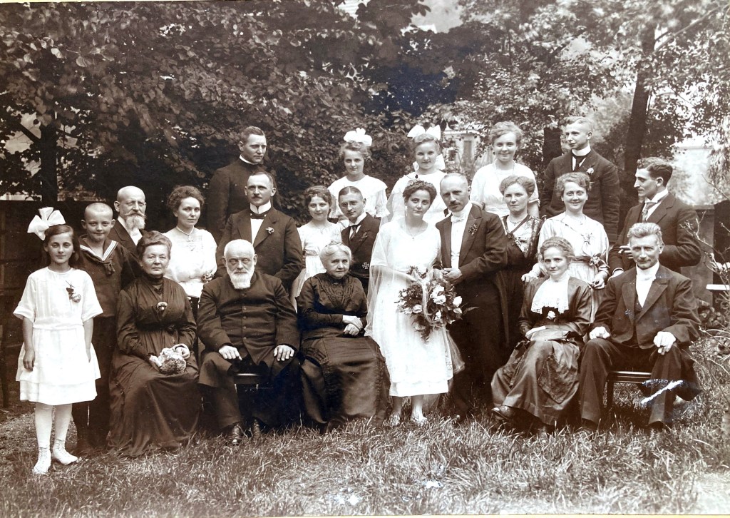 Die Hochzeit meiner Großmutter Elisabeth 1920. Maria sitzt vorne, neben dem Bräutigam.