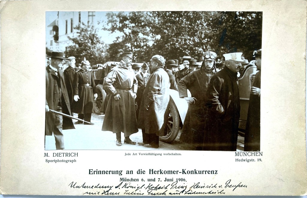 1 Die Herkomer Konkurrenz war eine Autorallye für Tourenwagen, die der Malerfürst und Autonarr Sir Hubert von Herkomer 1905 zum ersten Mal ausrichtete. 159 Teilnehmer bestritten die Rallye 1906, die in sechs Etappen über 1.700 km von Frankfurt über München, Linz nach Wien und zurück über Klagenfurt und Innsbruck wieder nach München führte. Prinz Heinrich von Preussen nahm an der Rallye mit Startnummer 75 teil.