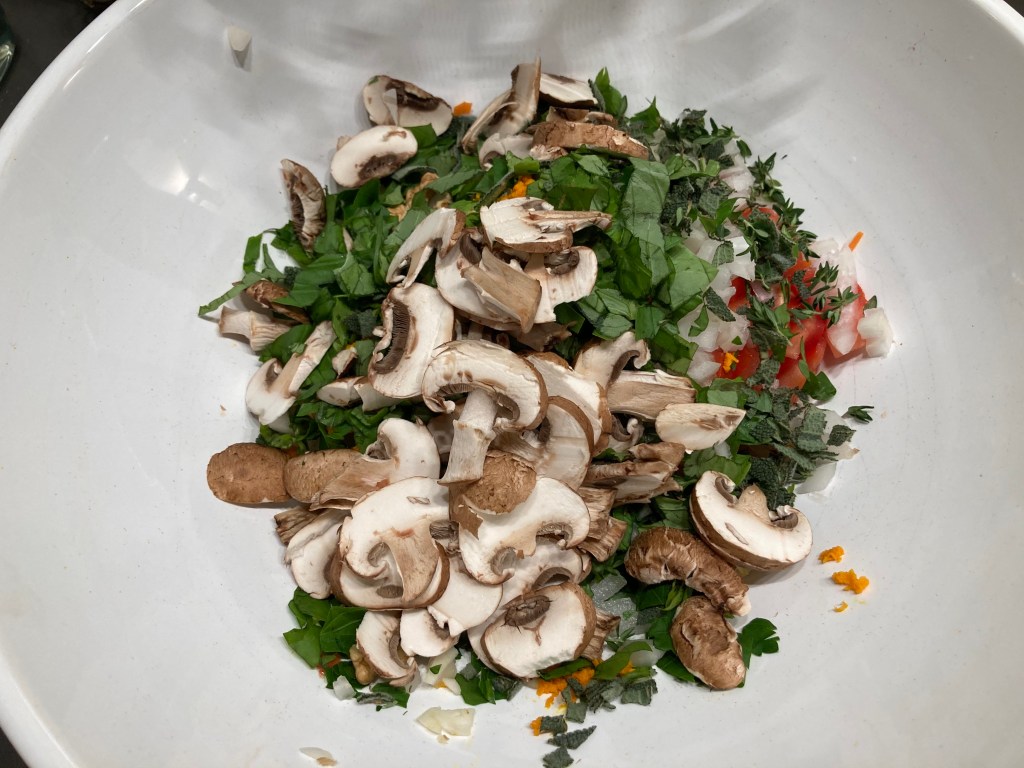 Neben Kurkuma brauche ich für meinen Salat eine Menge anderer Dinge, wobei aber nichts davon wirklich unverzichtbar ist: Wenn du zum Beispiel keine Schalotten hast, nimm eine Zwiebel. Wenn du kein Salbei hast, lauf‘ nicht extra ins Geschäft – lass es einfach weg.
