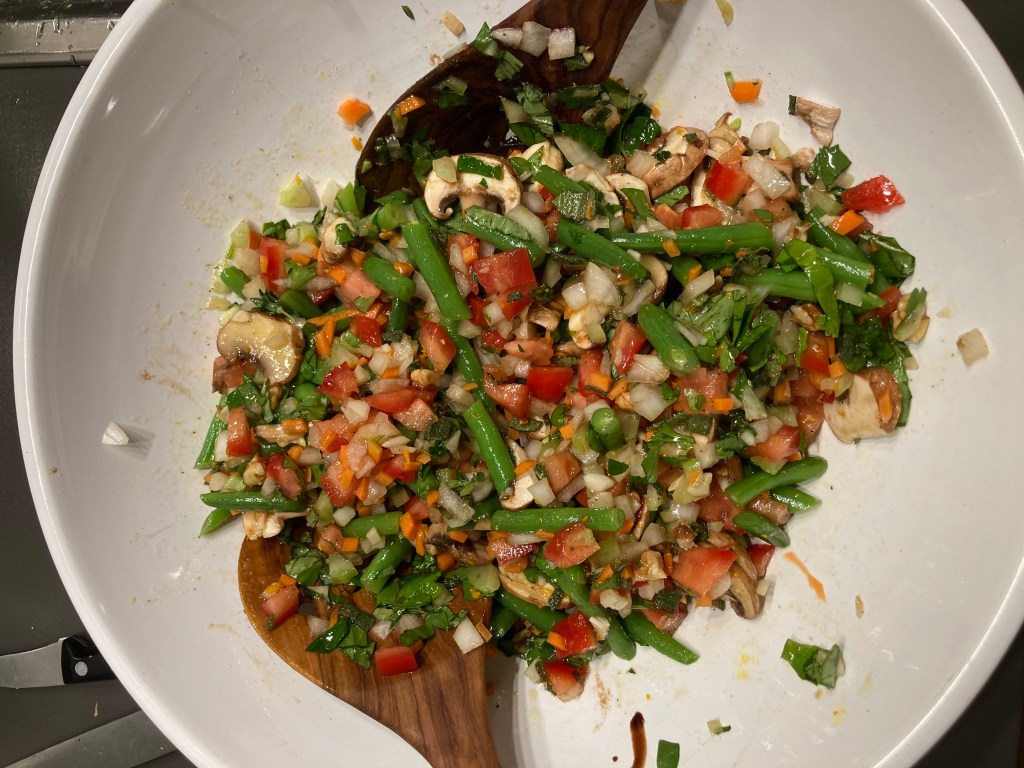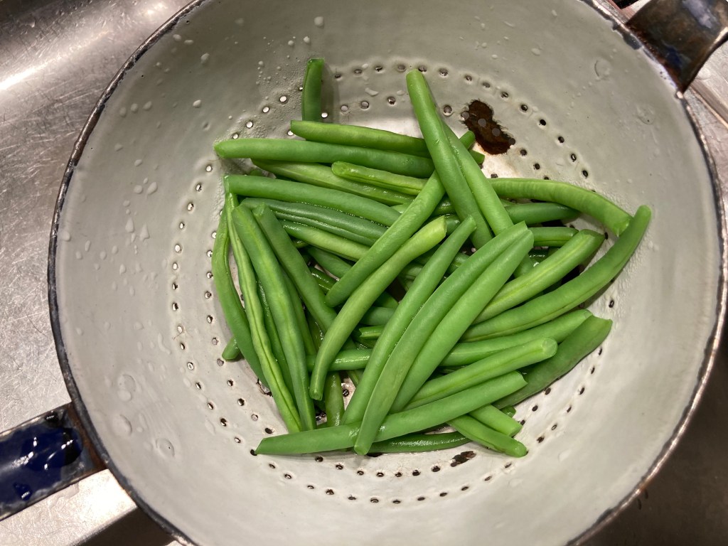 1 handvoll frische grüne Bohnen, blanchiert und gedrittelt