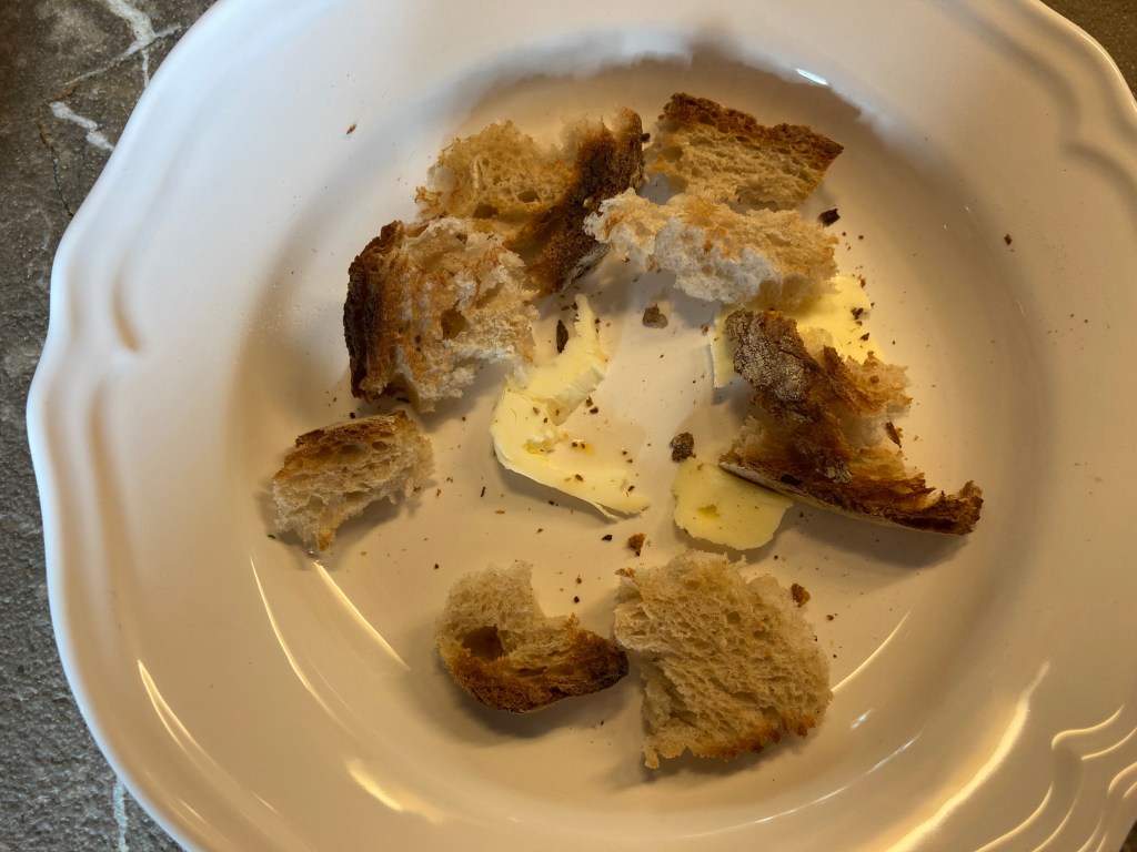 1 Scheibe Weissbrot, gegrillt oder getoasted und in Stücke gebrochen