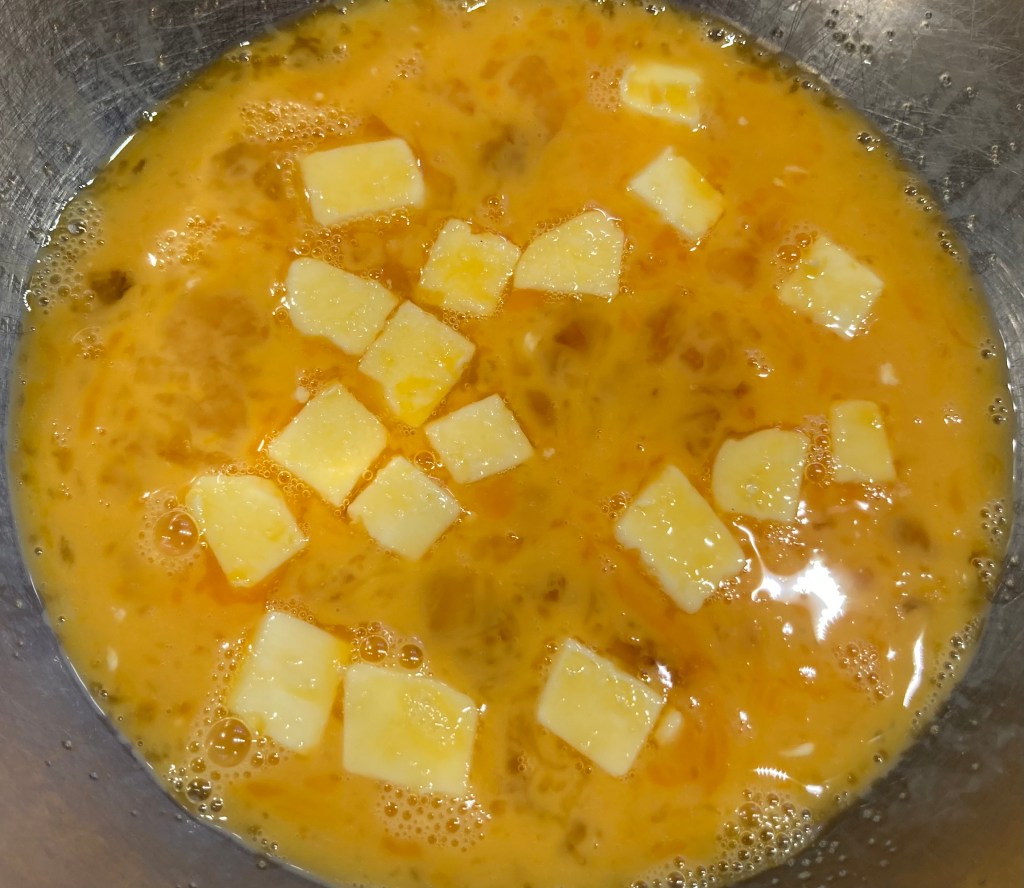 1. Perfekt! Aber wo ist die Butter geblieben? Im Rezept erwähnt aber in der Anleitung kommt sie nicht vor. Ich gehe davon aus, dass die Butter, wir auf dem Foto ersichtlich, in Stücken zum Ei in die Pfanne gegeben wird.